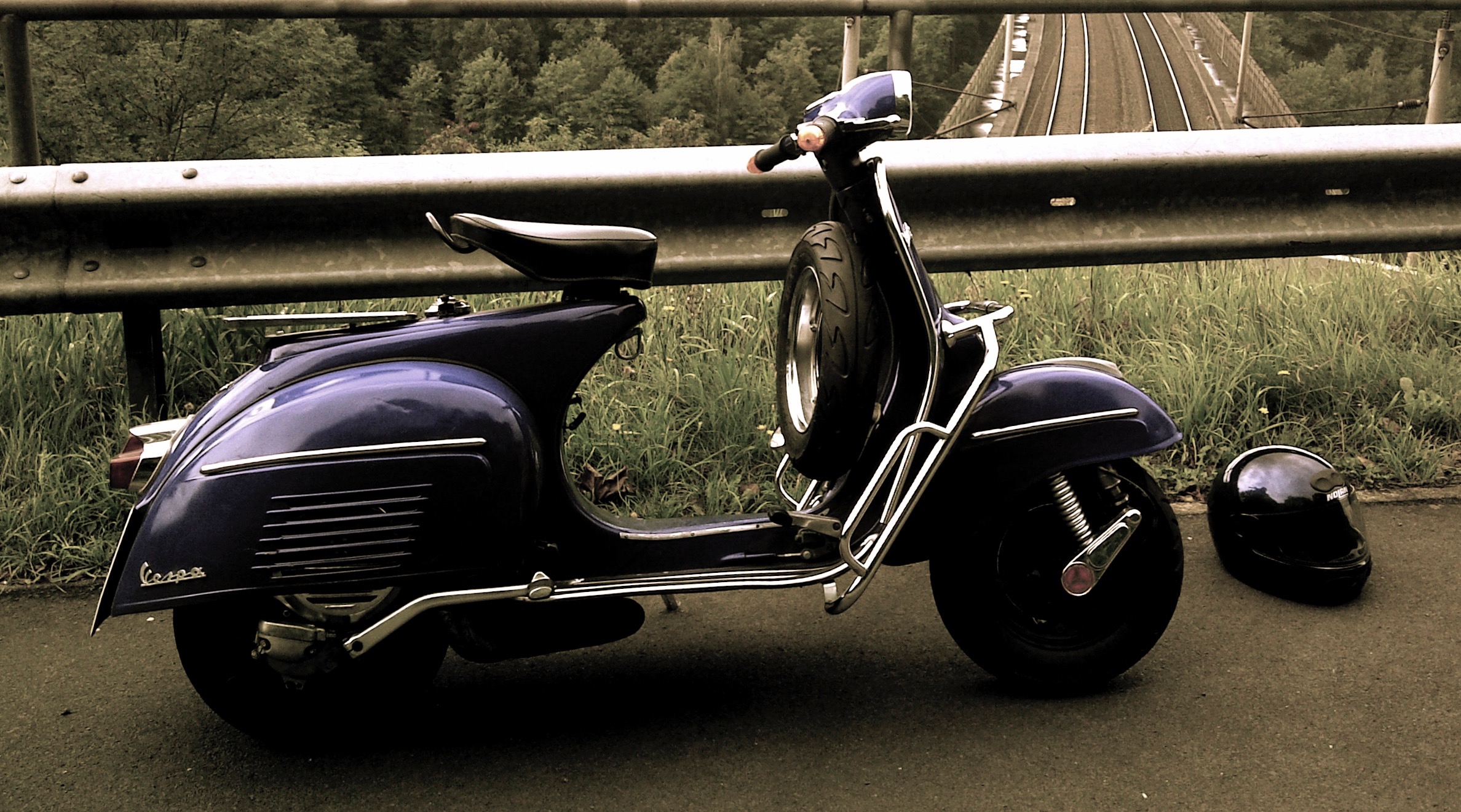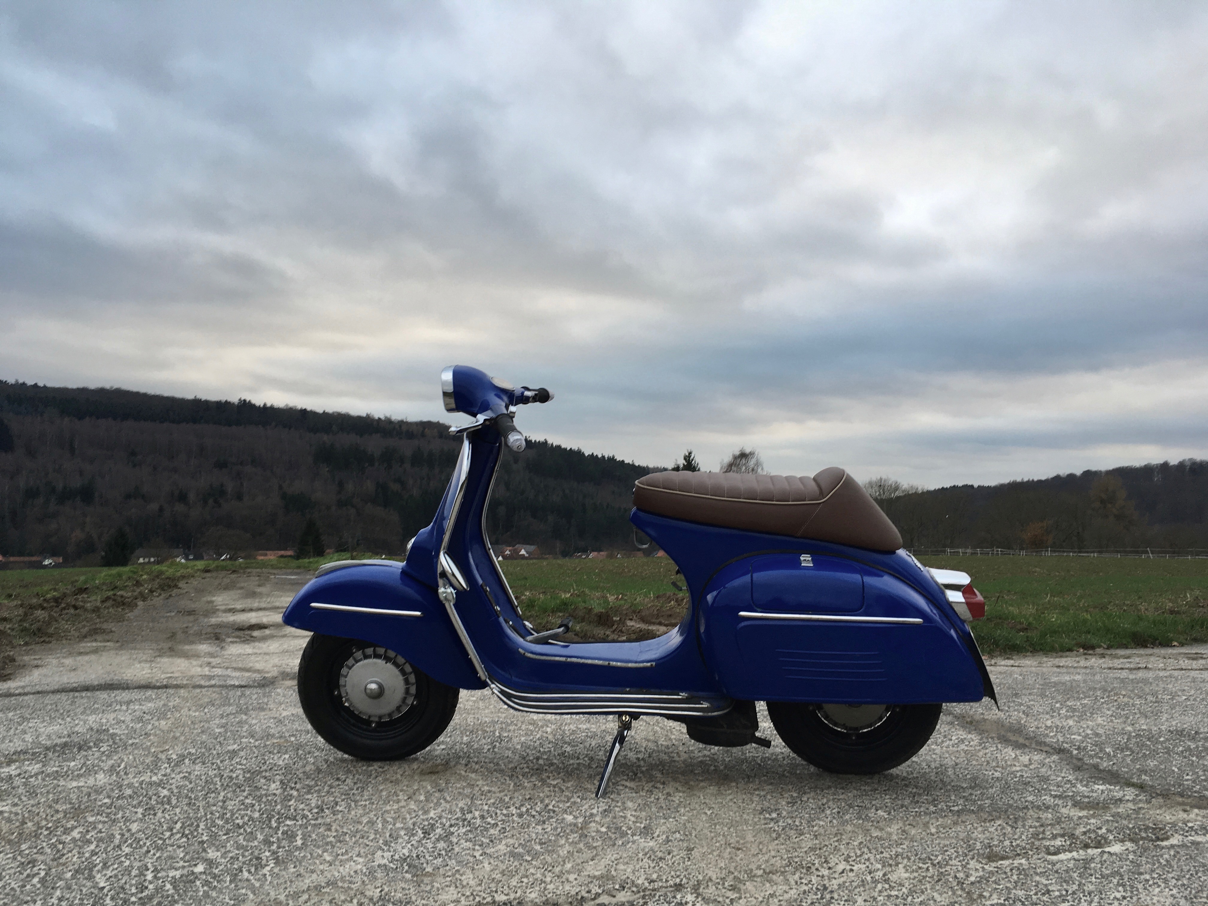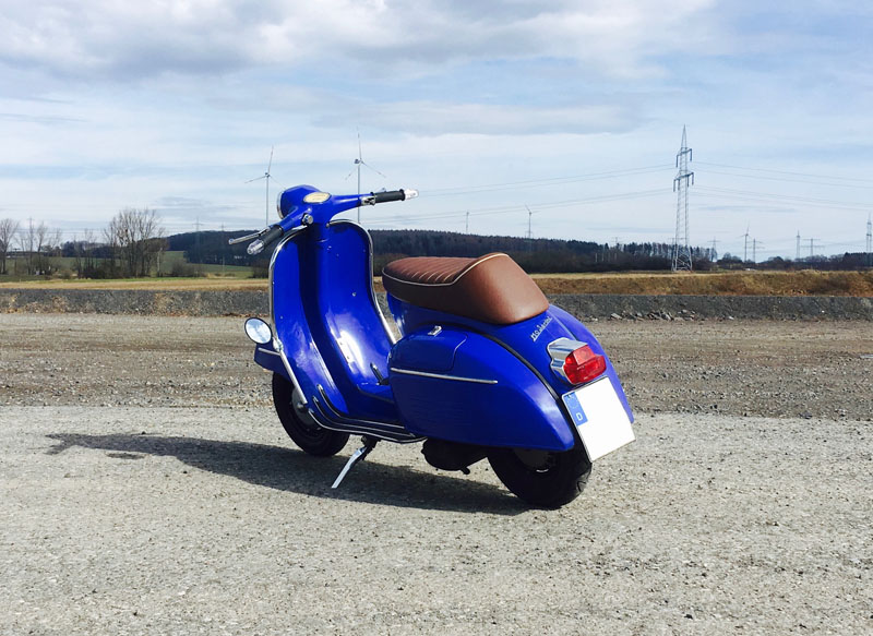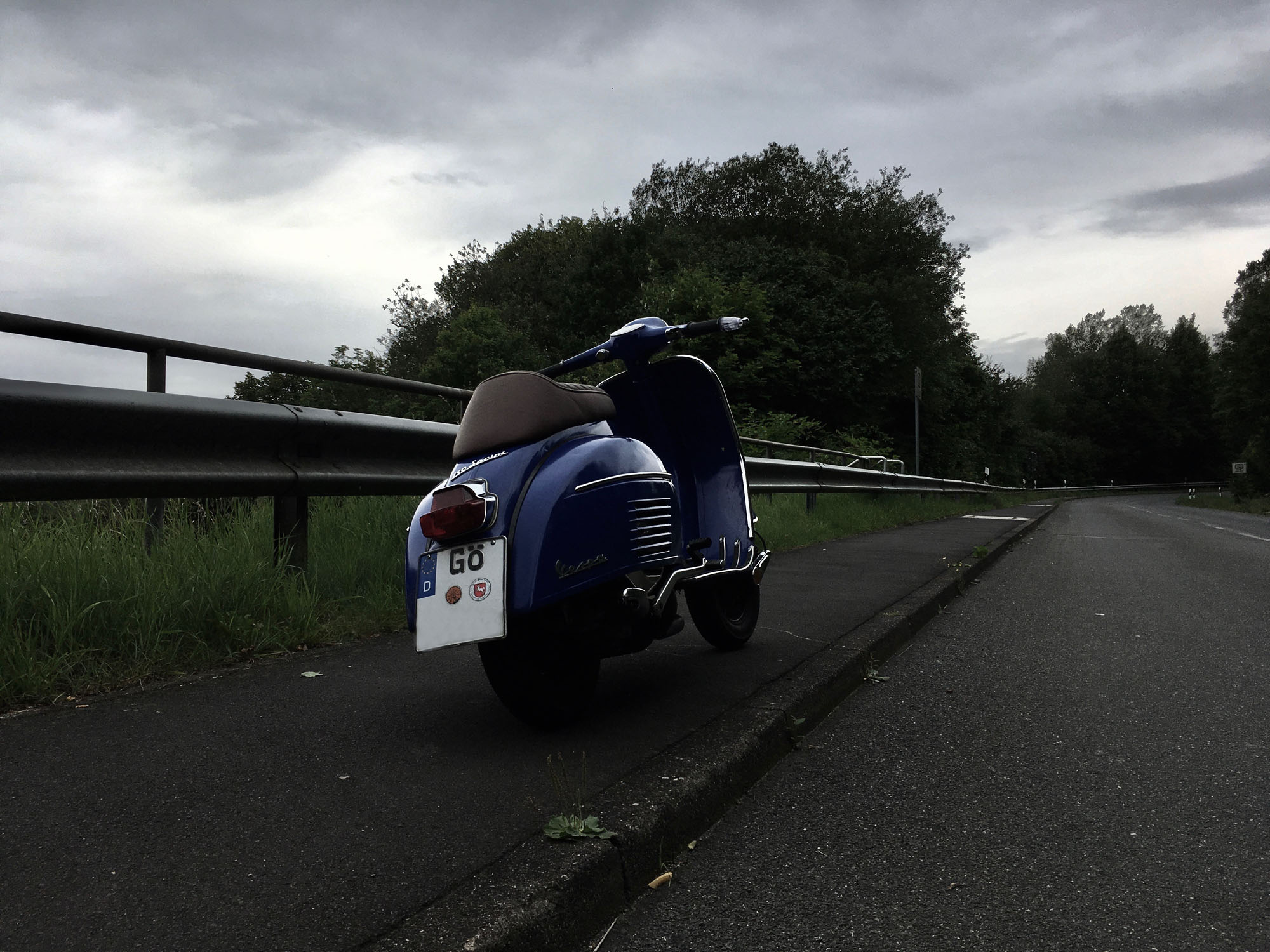 Sie begleitet mich schon seit über 20 Jahren, als ich in einer Studenten-WG, diese sandgestrahlte Karosserie unter der Flurdecke fand. Keine Ahnung von den ganzen Vespa-Modellen, aber irgendwie wild darauf nach meiner ersten PX mit 18 und einer V50, nun wieder eine große Vespa zu fahren. Mit allen Teilen mitgenommen, lackiert und zusammengebaut.